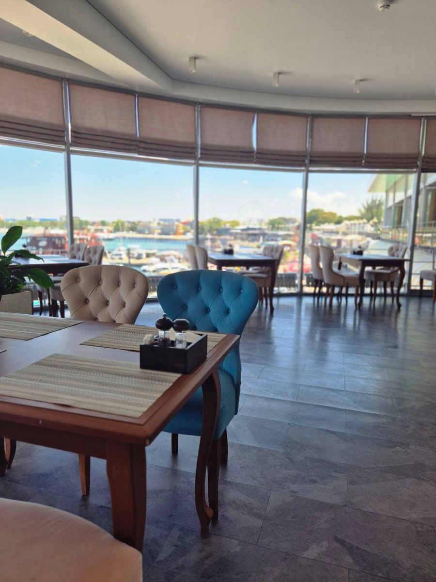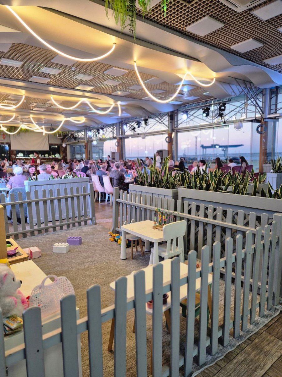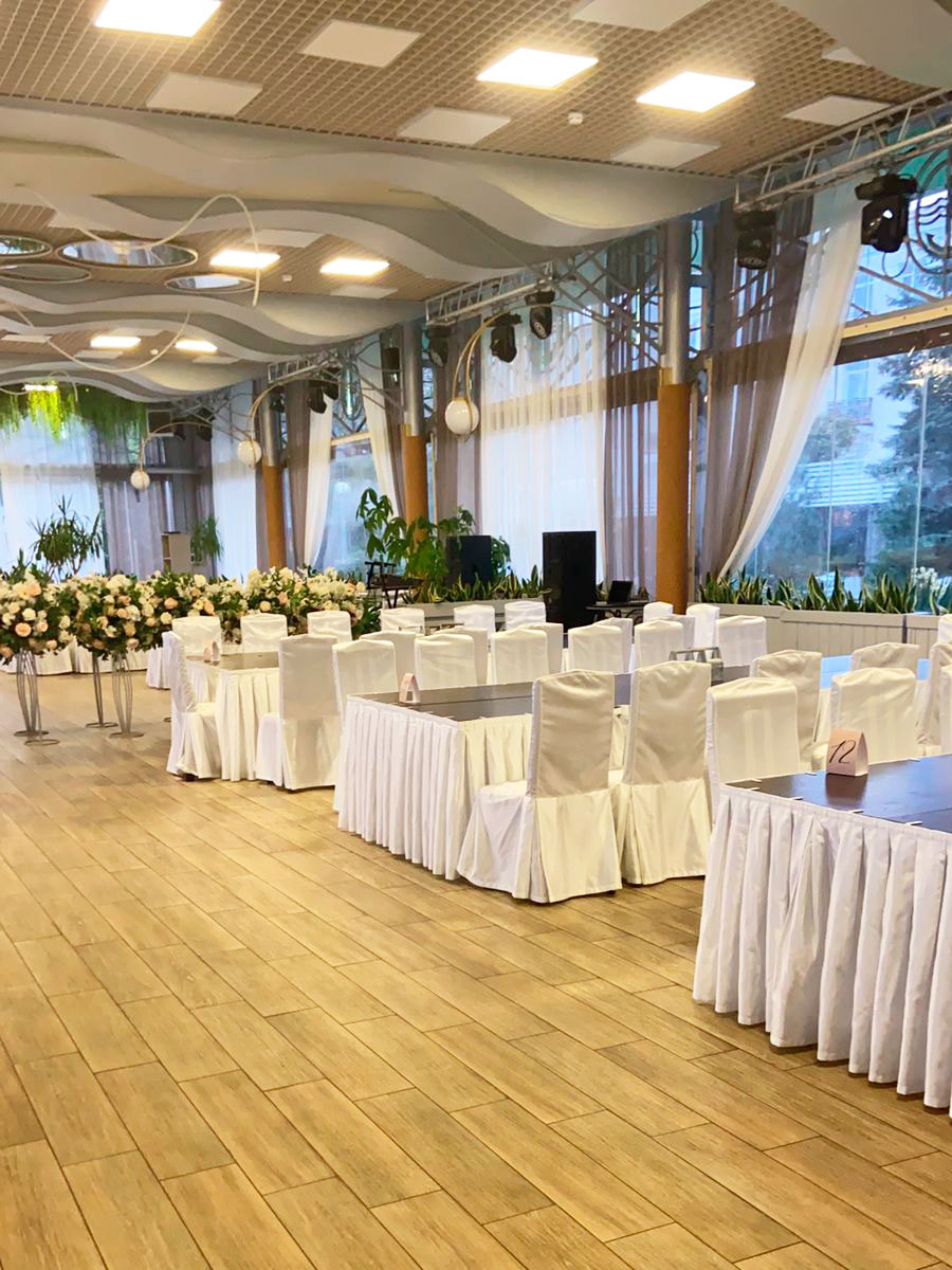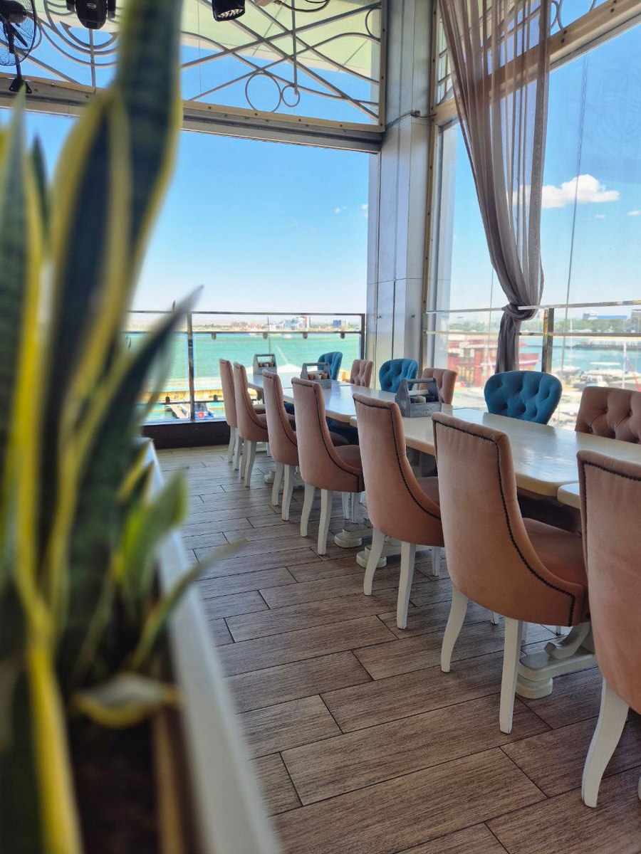 Для камерного мероприятия идеально подойдет закрытый зал на 60 персон с панорамными морскими пейзажами, а для больших компаний - общий зал на 120 мест с видом на море.